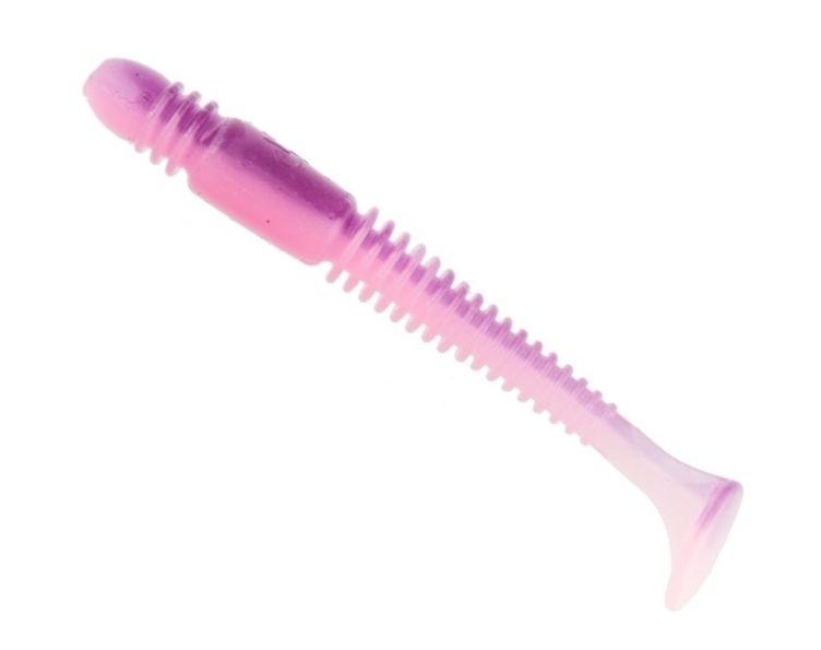 1. Formă Hibridă: Tioga este o nalucă hibridă, având un corp striat, tip vierme/grub, care se îngroașă spre cap, terminându-se cu o coadă de tip shad (coadă-copită) mică. Această formă unică produce o mișcare oscilantă distinctivă în apă.