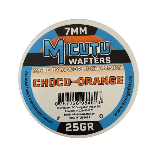 Wafters Micutu Choco Orange 7mm sunt wafters echilibrate, create special pentru pescuitul la crap si alte specii de apa dulce, recunoscute pentru capacitatea lor de a atrage rapid pestii datorita combinatiei intense de arome dulc. Aroma intensa ofera un stimul olfactiv puternic, care actioneaza eficient in diferite conditii de temperatura si claritate a apei. Aromele sunt eliberate treptat, formand o zona de atractie in jurul carligului, care incita pofta de hrana a pestilor, chiar si in momentele de apatie.